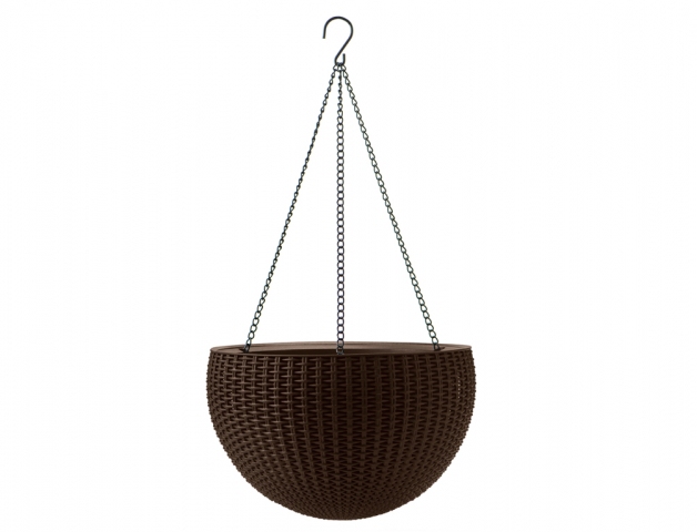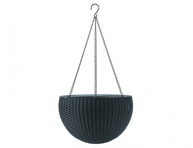 Plastový závěsný obal na květník je vhodný do interiéru i do zahrady. Má nadčasový design - imitaci rattanového výpletu. Díky použití vysoce kvalitních plastových materiálů je odolný vůči vlivům počasí. Barva: antracitová. Průměr: 35 cm, výška: 22 cm.