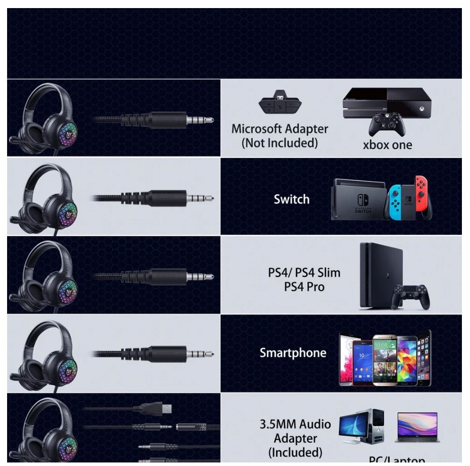 Onikuma X7 Pro herní podsvícená sluchátka s mikrofonem, 3.5mm + USB – černá