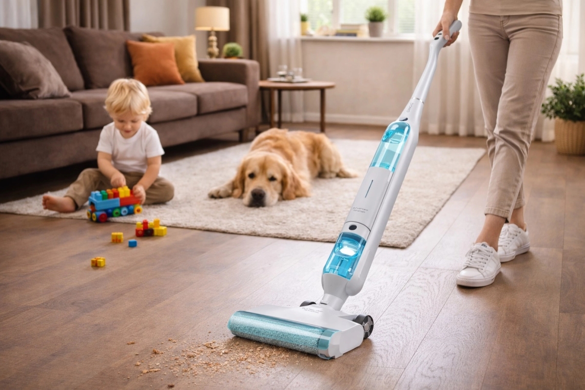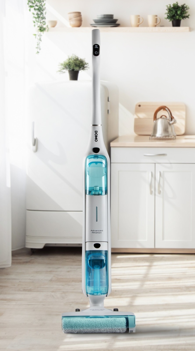 Usnadněte si úklid s podlahovým čističem DOMO DO253SW. Tento bezdrátový mop kombinuje vysávání a elektrické vytírání v jednom pohybu.