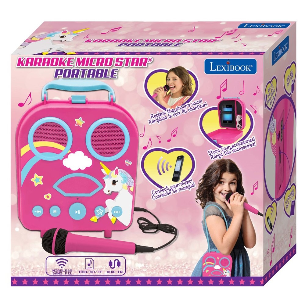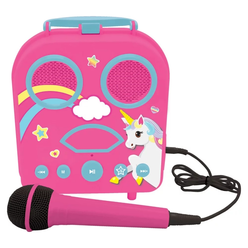 Přehrávání hudby z telefonu nebo tabletu pomocí bezdrátové technologie Bluetooth® Snadno přenosný reproduktor ve tvaru kufříku pro poslech oblíbené hudby kdekoli! Funkce Aux-In a porty USB/TF Včetně ramenního popruhu! Speciální funkce pro tlumení hlasu zpěváka, zpívejte přes něj a buďte hvězdou! 1 mikrofon v balení Velmi kvalitní potisk na celém povrchu kufříku Obsahuje úložný prostor Navrženo a vyvinuto v Evropě - vyrobeno v Číně Záruka: 2 roky