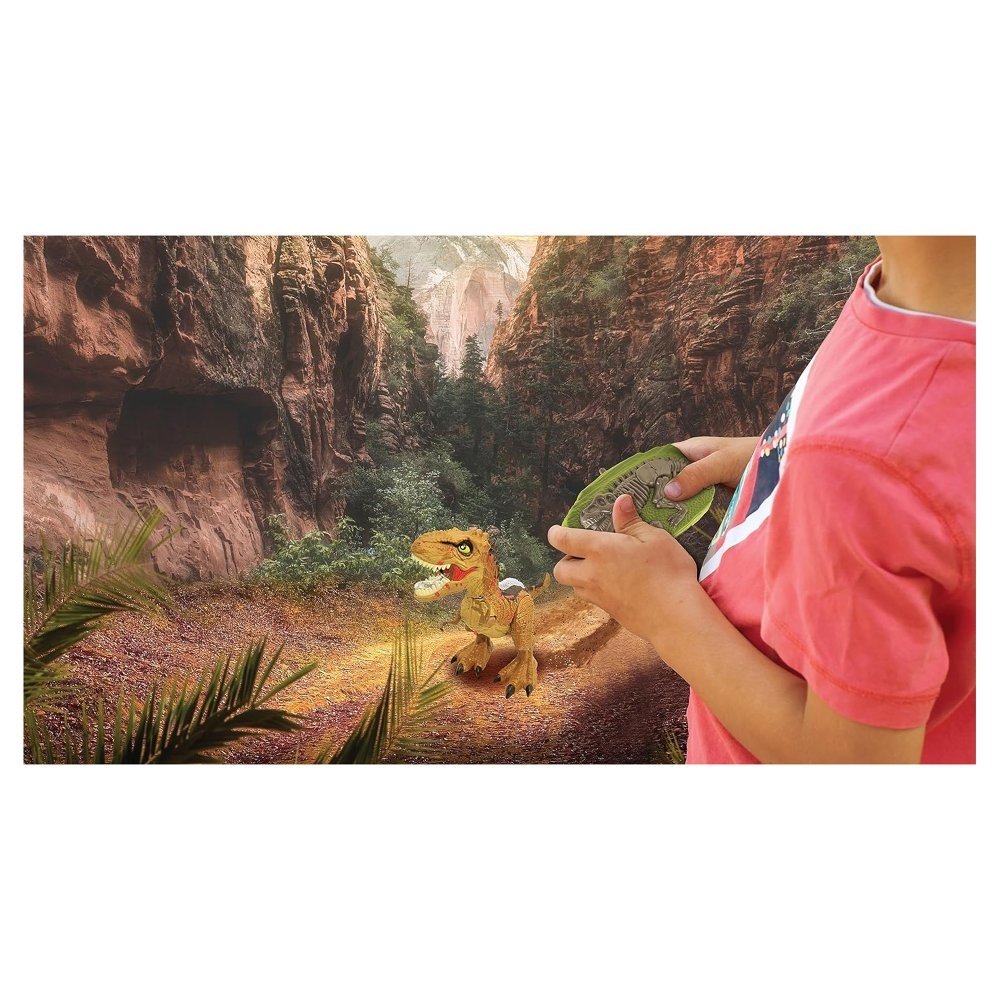 Fascinující model dinosaura nadchne všechny fanoušky prehistorického světa a oslňujících efektů. Dálkové ovládání ve tvaru zkameněliny nebo ovládání pomocí gest, obě varianty poskytují kontrolu nad pohyby dinosaura. Pohybuje se všemi směry, naklání tělo, umí klouzavou chůzi, a dokonce se otáčí o 360°! Jeho kloubové pohyby mu propůjčují realistický vzhled. Případně může volně pobíhat v demo režimu s přednastavenými pohyby. Kromě úžasných světelných a zvukových efektů, dinosaurus plive simulovaný kouř – stačí naplnit nádržku na vodu! Vestavěnou dobíjecí baterii v Tirexovi nabijete pomocí přiloženého USB kabelu. Do obou ovladačů budete potřebovat tužkové baterie. Dinosaurus na dálkové ovládání je skvělou hračkou pro děti, která poskytuje zábavu a současně rozvíjí jejich motorické dovednosti a koordinaci. Klíčové vlastnosti Dinosaurus na dálkové ovládání Pro všechny, které fascinuje prehistorický svět dinosaurů Dálkové ovládání ve tvaru zkameněliny + ovládání na zápěstí pro kontrolu gesty Úžasné světelné a zvukové efekty Simulovaný efekt plamene – stačí naplnit nádržku vodou Rozvíjí motorické dovednosti a koordinaci Kloubové pohyby pro realistický vzhled Pohybuje se všemi směry Naklání se a umí otočky o 360° Demo režim s přednastavenými pohyby Vestavěnou dobíjecí baterii v dinosaurovi nabijete pomocí USB kabelu (součástí balení) Dálkové ovládání (zkamenělina) - 2x 1,5 V AA/LR6 baterie (nejsou součástí balení) Náramkové ovládání pro pohyb gesty – 2x 1,5 V AAA/LR3 baterie (nejsou součástí balení), pro otevření přihrádek použijte šroubovák (není součástí balení)