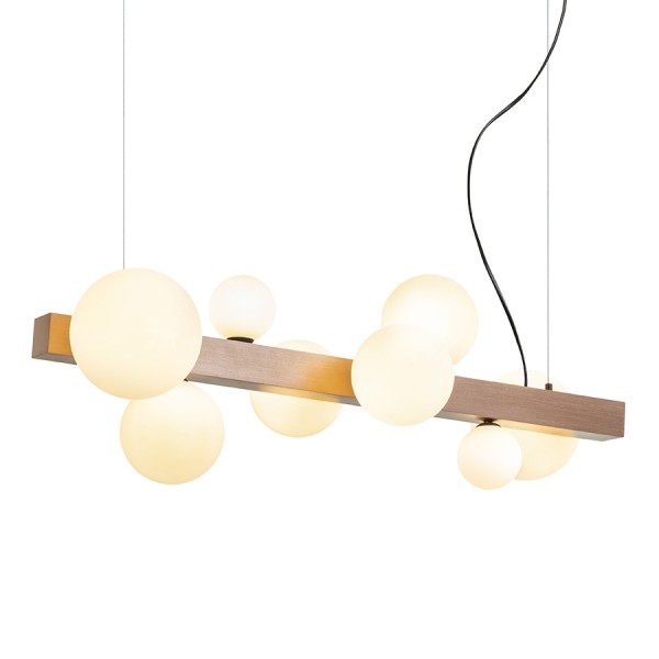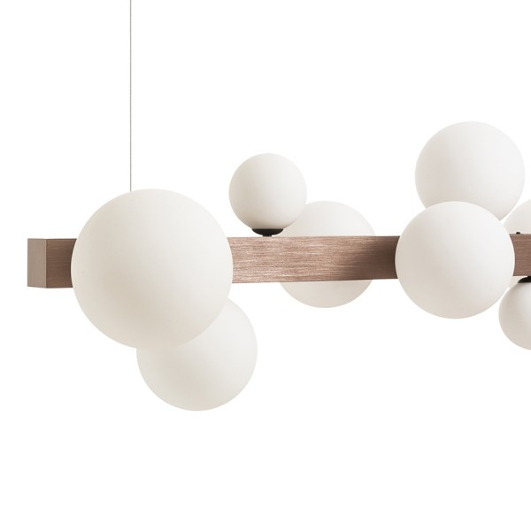 Elegantní designové závěsné svítidlo se skleněnými stínidly v opálovém provedení, rozmístěnými na kovovém hranolu s povrchovou úpravou v česaném bronzu. Osm stínidel ve třech různých velikostech vytváří stylovou a originální kompozici, která oživí každý moderní interiér. Vhodné pro LED žárovky s paticí G9 (doporučený zdroj: G13464).