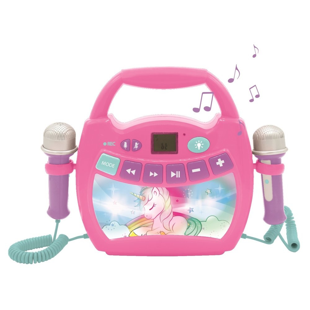 Reproduktor karaoke Jednorožec s mikrofony a osvětlením