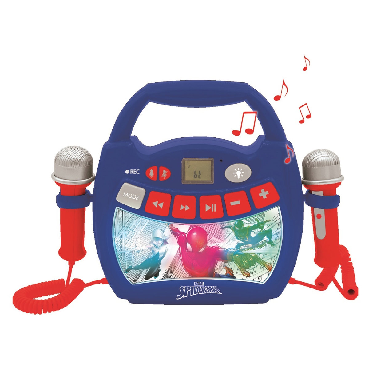 Reproduktor karaoke Spider-Man s mikrofony a osvětlením