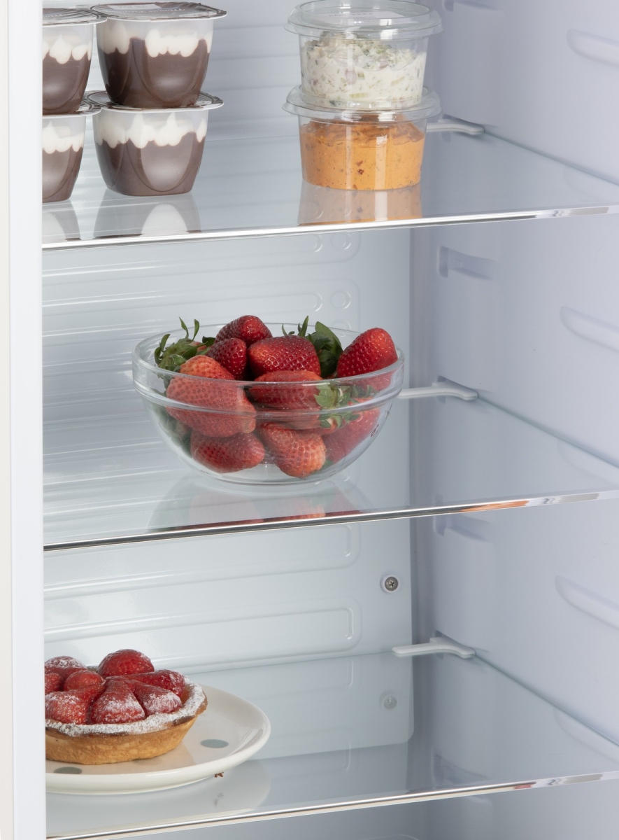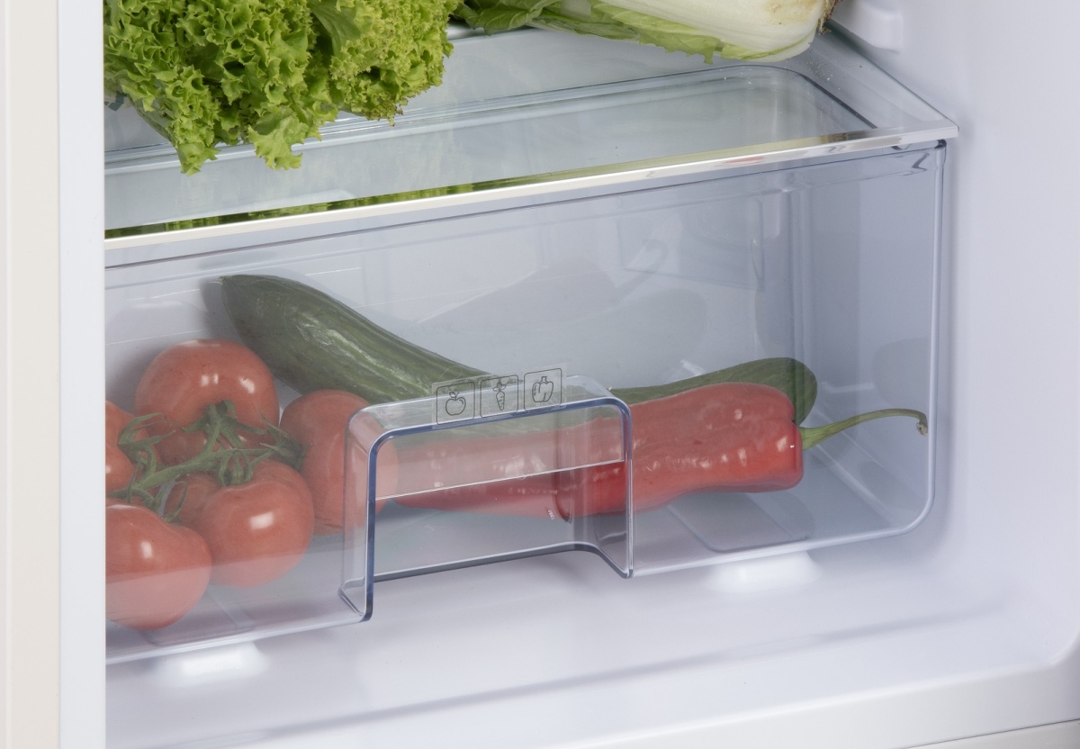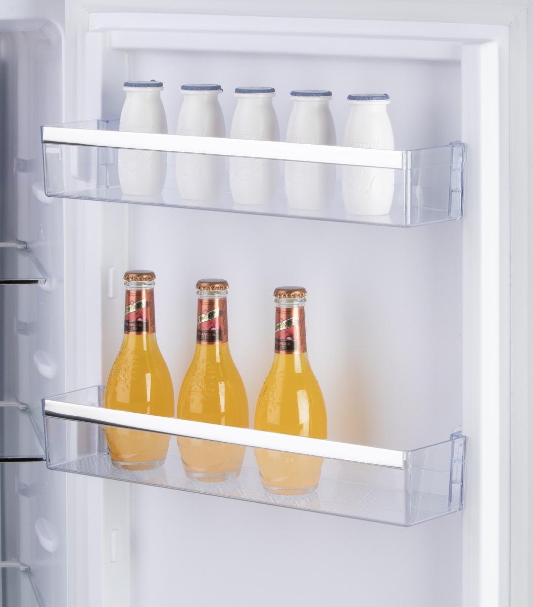 Praktické uspořádání s pěti skleněnými policemi, zásuvkou na zeleninu a čtyřmi dveřními policemi navíc zajišťuje maximální pohodlí.