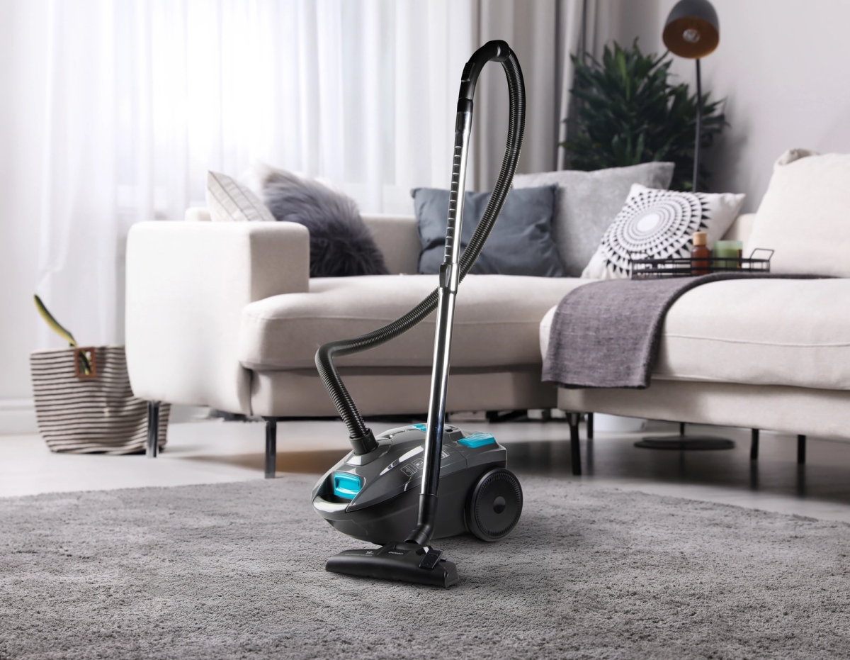 Sáčkový vysavač s tichým 69 dB motorem a bohatým příslušenstvím včetně turbo hubice a hubice na zvířecí chlupy. Kabel 7 m.