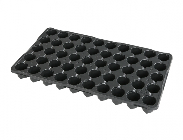 Černý lehčený mini sadbovač s 50 kusy v půdorysu kruhovými v průměru 4cm širokými spojenými květináčky. Rozměr celého sadbovače je: 27,5 x 49,5 x v. 4,5cm.