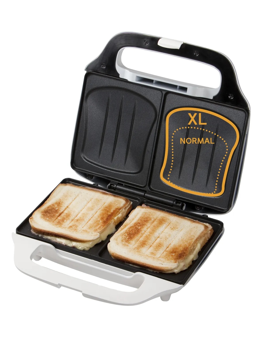XL sendvičovač vám umožní připravovat si jak velké tak i malé sendviče. Sendvičovač svou velikostí pečící plochy převyšuje běžné sendvičovače i o více než 50% při zachování kompaktních vnějších rozměrů. Vysoký příkon zajišťuje velmi rychlé nahřátí celé plochy na potřebnou teplotu a díky kvalitnímu nepřilnavém povrchu se vám sednviče nikdy nepřipeče. Speciální vytvarování pečící plochy do tvaru mušle pak umožňuje dokonalé propečení sendviče i bez vytlačování obsahu ven na pečící desku. Jistě také oceníte možnost postavit sendvičovač na bok, aby při uložení do police zabral co nejméně místa.