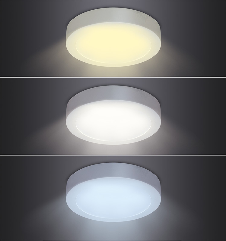LED mini panel přisazený stropní kulatýpanel disponuje speciálním LED zdrojem s přepínačem, který umožňuje nastavení teploty světla (chromatičnosti) 3000K, 4000K nebo 6000K.spotřeba: 12Wsvětelný tok: 900lmteplota chromatičnosti: možnost nastavení 3000K, 4000K, 6000K (teplá, neutrální, studená bílá)životnost LED: 30.000 hodinúhel svícení: 160°zahřívací doba: <0,1sindex podání barev Ra: >80materiál: hliník + PMMAkrytí: IP20napětí: 85 - 265V, 50 - 60Hznapájecí trafo součástíprovozní teplota: -20°C až 50°Crozměry: 170x38mmenergetická třída: G