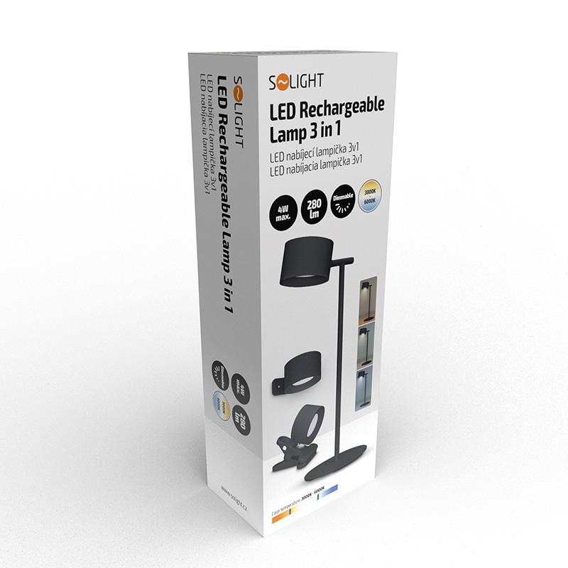 Solight LED nabíjecí lampička 3v1, 280lm, změna CCT, stmívání, černá