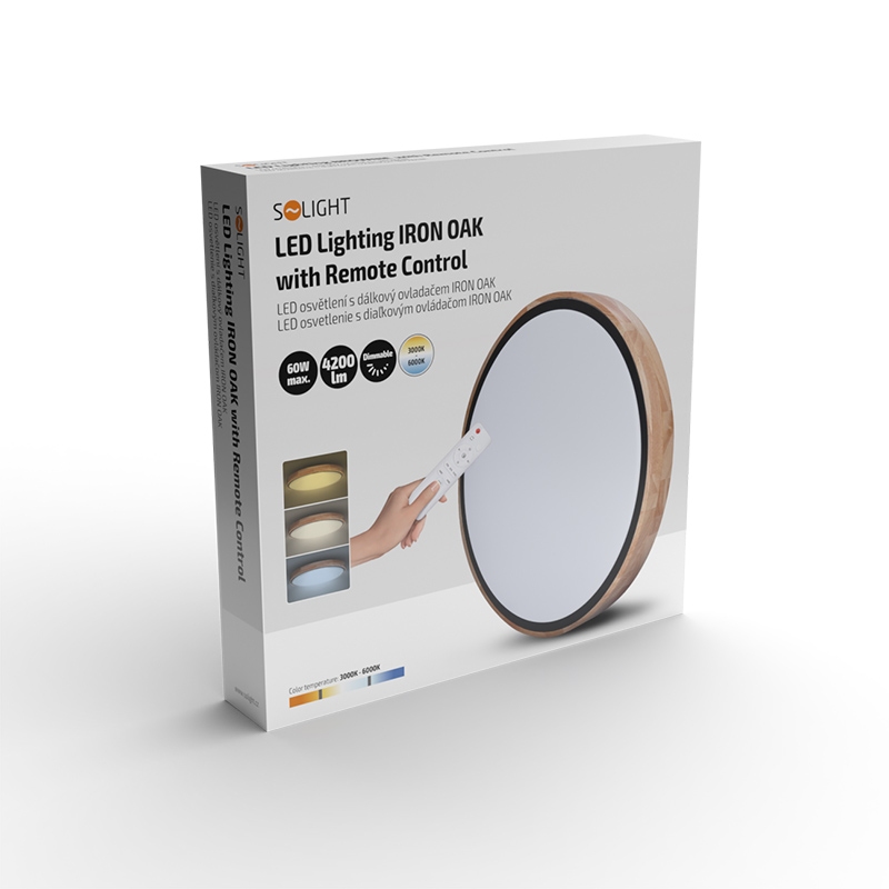 Solight LED osvětlení s dálkovým ovladačem Iron Oak, 60W, 4200lm, 51cm, změna chromatičnosti, stmívatelné