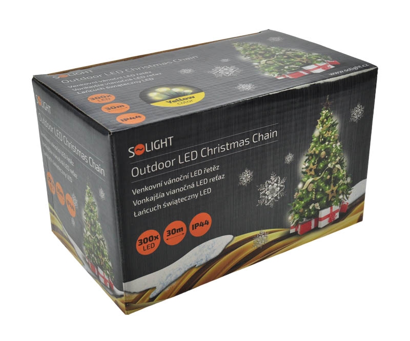 Solight LED vánoční řetěz, 300 LED, 30m, přívod 5m, IP44, teplá bílá