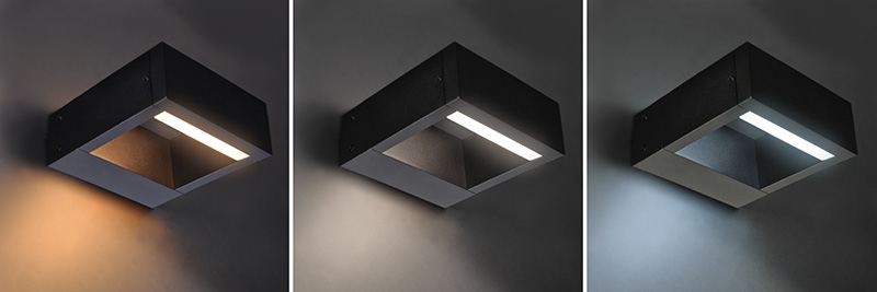 designové LED osvětlení Ragusa s volitelnou teplotou světla světlo disponuje zabudovaným přepínačem, pomocí kterého je možné předem nastavit teplotu chromatičnosti (světla) od teplé po studenou bílou světlo je vhodné pro instalaci na venkovní stěny stejně tak i do interiérů spotřeba: 7W světelný tok: 450lm volitelná teplota chromatičnosti: 3000/4000/6000K (teplá, neutrální, studená bílá) životnost LED: 30.000 hodin úhel svícení: 120° užitečný světelný tok v úhlu 120°: 450lm index podání barev Ra: >80 materiál: hliník krytí: IP54 (chráněno proti stříkající vodě) napětí: 220-240V AC provozní teplota: -20°C až 50°C rozměry: 150 x 160 x 60 mm barva: černá energetická třída: G