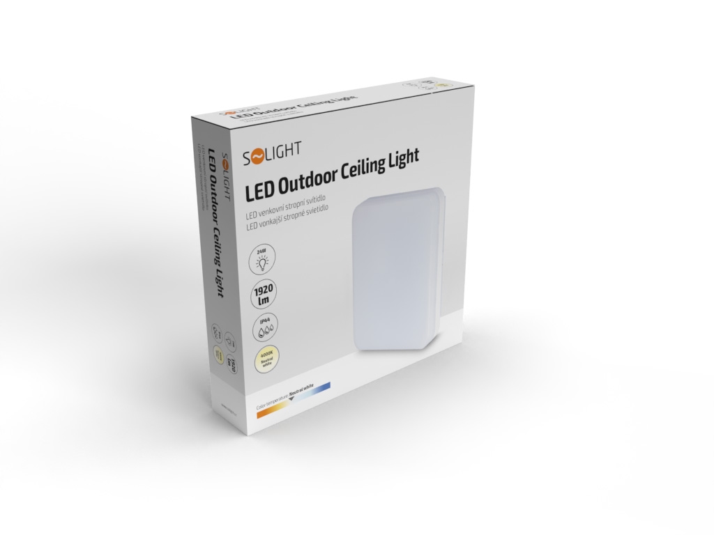 Solight LED venkovní osvětlení, přisazené, čtvercové, IP54, 24W, 1920lm, 4000K, 28cm Barevná teplota (К): 4000 K, Stupeň krytí (IP): IP54
