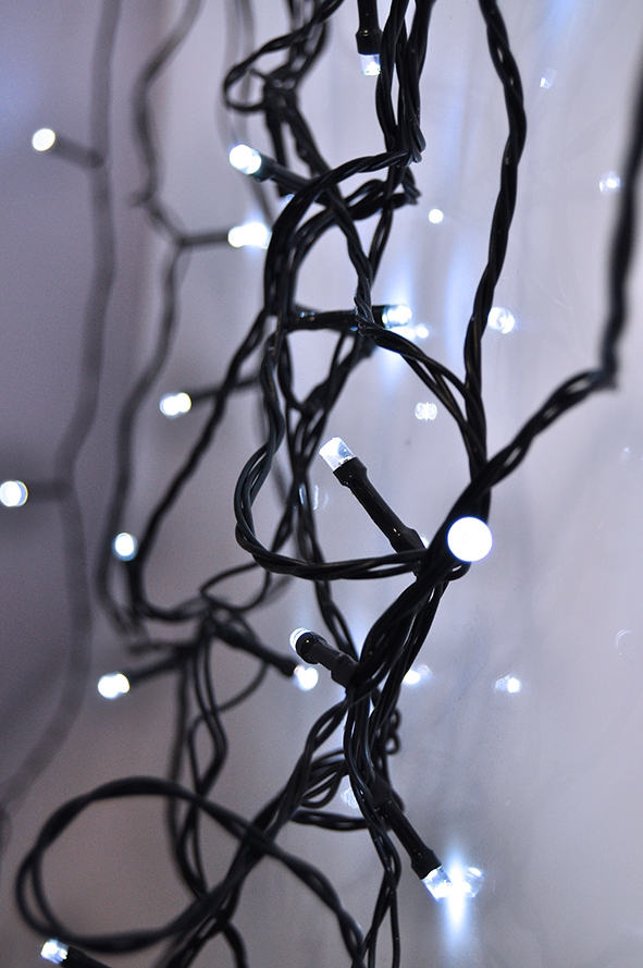 počet LED diod: 200 2-násobná hustota LED diod barva světla: studená bílá 8 světelným módů (blikání, prolínání světla, stmívání atd.) paměťová funkce - po zapnutí se aktivuje naposledy použitý světlený mód časovač 6h/18h - po 6h od zapnutí se automaticky vypne a znovu zapne po 18h vnitřní i venkovní použití vzdálenost žárovek: 5cm délka osvětleného kabelu: 10m délka přívodního kabelu: 5m barva kabelu: zelená příkon: 4W napájení: 230V AC/31V DC max. 6W stupeň krytí: IP44 pracovní teplota: -20°C až +50°C