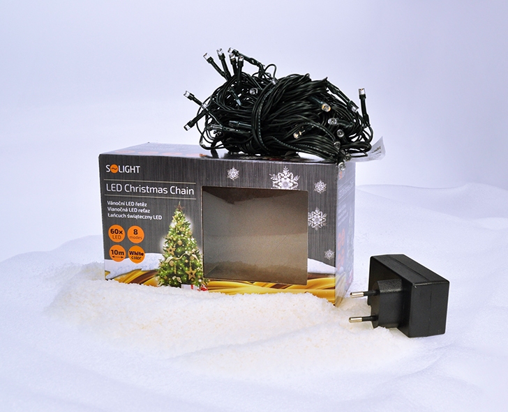 Solight LED venkovní vánoční řetěz, 200 LED, 10m, přívod 5m, 8 funkcí, IP44, studená bílá