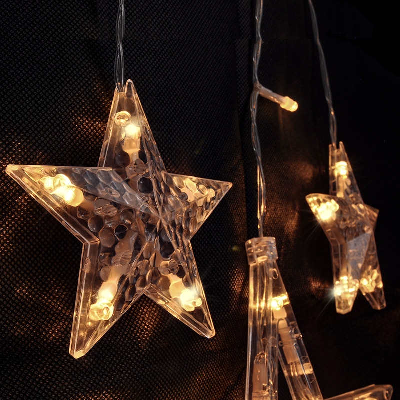 LED venkovní vánoční závěs s hvězdami počet LED diod: 123 barva světla: teplá bílá rozestupy svislých kabelů: 30cm vodorovná délka osvětleného kabelu: 3m svislé uspořádání žárovek: 8/15/8/15...LED (41/75cm) délka přívodního kabelu: 2m barva kabelu: transparentní časovač 6h/18h - po 6h od zapnutí se automaticky vypne a znovu zapne po 18h monožst manuálního zapínání bez časovače napájení: 3x AA (nejsou součástí), nebo napojením na power banku přes konektor třída ochrany: IP44 (venkovní i vnitřní použití) balení: barevná krabice