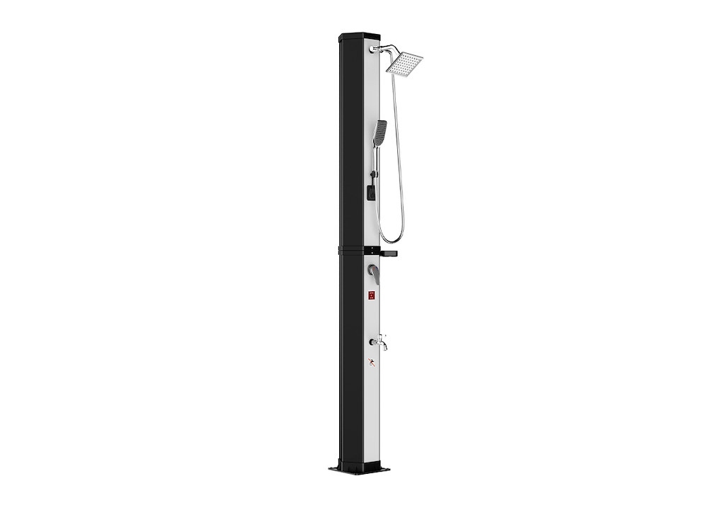 Zahradní dvoudílná a skladná sprcha DUO v oktagonovém provedení o objemu 60 l pro venkovní použití zajistí ohřev vody přiváděné ze zahradní hadice a tím perfektní pocit pohodlí při sprchování teplou nebo vlažnou vodou. Sprcha má pákovou baterii, ruční sprchu i kohoutek na oplach nohou. Ohřev vody zajišťuje sluneční záření a tělo sprchy, které funguje jako solární kolektor. Ke sprchování musí být zahradní sprcha stále napojena na vodovodní řadu. Pokud není napojena, není možné se sprchovat. Sprcha se kotví pomocí 4 šroubů (nejsou součástí balení) pevně k zemi, čímž je zajištěna její perfektní stabilita.