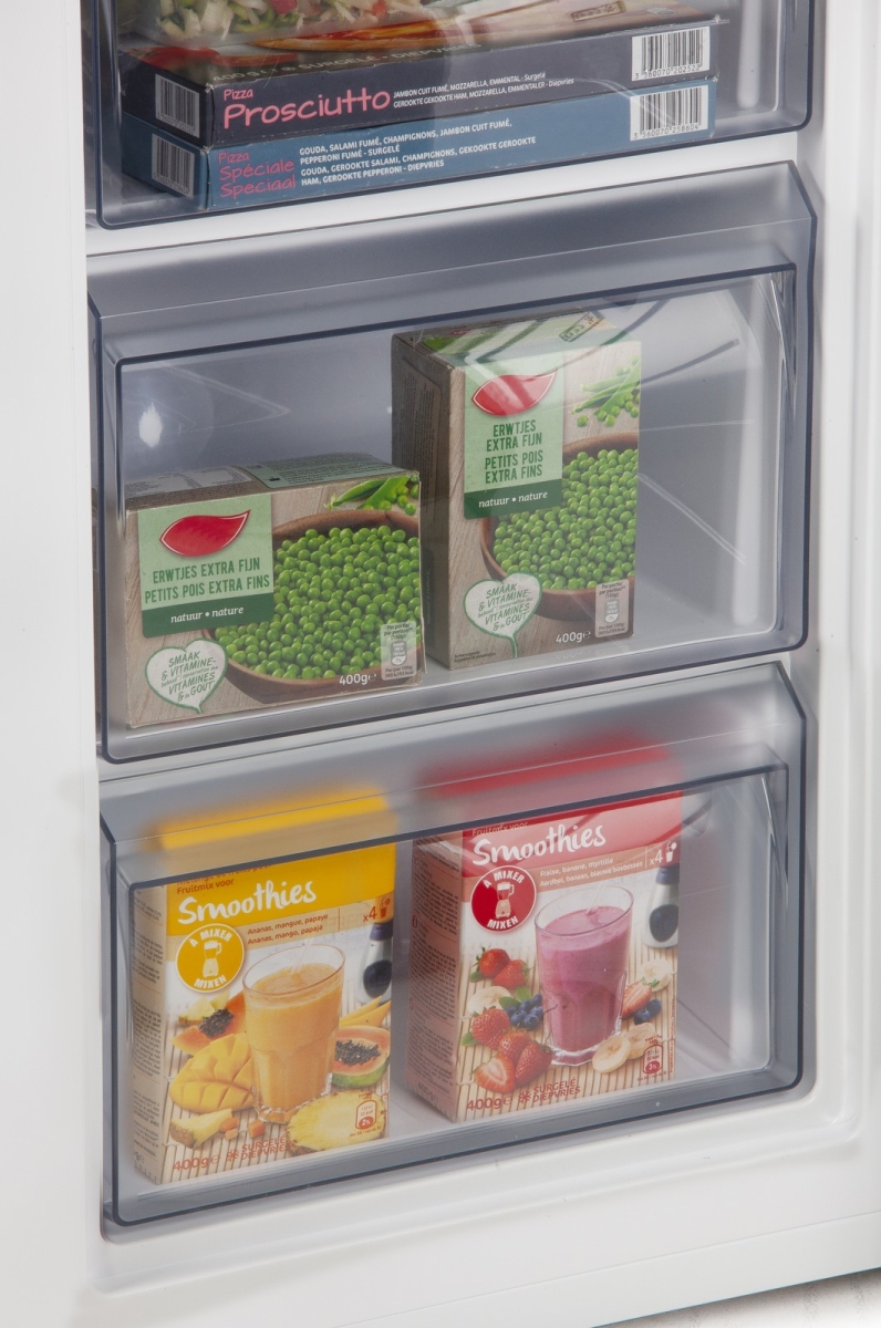 Jednou z největších výhod tohoto mrazáku jsou otočné dveře s magnetickým uzávěrem. To vám dává flexibilitu namontovat dveře na levou nebo pravou stranu, v závislosti na uspořádání vaší kuchyně. Mechanická regulace teploty vám umožňuje snadno nastavit ideální teplotu, zatímco tři průhledné zásuvky usnadňují organizaci mražených potravin.