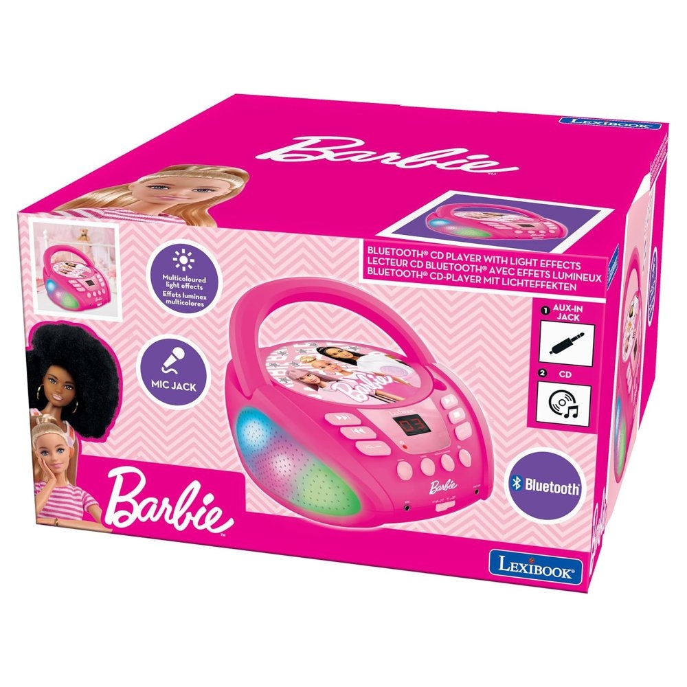 Přenosný CD přehrávač poskytne dětem skvělou zábavu na hodiny. Přehrávač s vícebarevnými světelnými efekty je kompatibilní s disky CD/CD-R/CD-RW a je vybaven funkcí Bluetooth® 5.0, která umožňuje připojit další externí zařízení. Díky portu na mikrofon (mikrofon není součástí) se přehrávač skvěle hodí na karaoke zábavu nebo pěvecké vystoupení. Hudební výběr můžete rozšířit prostřednictvím tabletu či smartphonu (nejsou součástí balení), které snadno zapojíte díky konektoru AUX-in. Přehrávač je vybaven funkcemi jako "program" pro zvolení pořadí písniček, "opakování" a "náhodný výběr" a výstupní výkon reproduktorů 3 W garantuje kvalitní zvuk. K dispozici je dokonce i praktická rukojeť pro snadné přenášení.Zařízení lze napájet prostřednictvím AC provozu (kabel je součástí balení) nebo šesti bateriemi 1,5 V typu C/LR14 (nejsou součástí balení).Pokud se vaši nejmenší rádi předvádějí a zpívají, je tento přehrávač, nabízející hodiny zábavy a rozvíjející dětskou kreativitu, bezpochyby nezbytnou výbavou pro váš domov, školu, nebo jakoukoliv dětskou oslavu. Hudební aktivity také stimulují kognitivní funkce mozku a přinášejí spoustu výhod, jako vývoj motorického plánování, koordinace a rozvoj smyslů. Dovolte svým dětem zpívat jako jejich oblíbená hudební hvězda!Klíčové vlastnostiTéma BarbieSvítící Bluetooth CD přehrávačHudební zábava pro dětiRozvoj dětské kreativity a stimulace kognitivních funkcí mozkuKaraoke3,5 mm konektor pro připojení mikrofonu (není součástí balení)Vícebarevné světelné efektyKompatibilní s CD/CD-R/CD-RWFunkce Bluetooth® 5.0 pro připojení kompatibilních zařízení (zařízení nejsou součástí)Konektor AUX-in pro kompatibilní tablety a smartphony (zařízení nejsou součástí)Funkce program, opakování a náhodný výběrVýstupní výkon reproduktorů 3 WPraktická rukojeťNapájení: AC provoz (kabel je součástí balení) nebo 6x baterie 1,5 V typu C/LR14 (nejsou součástí balení)
