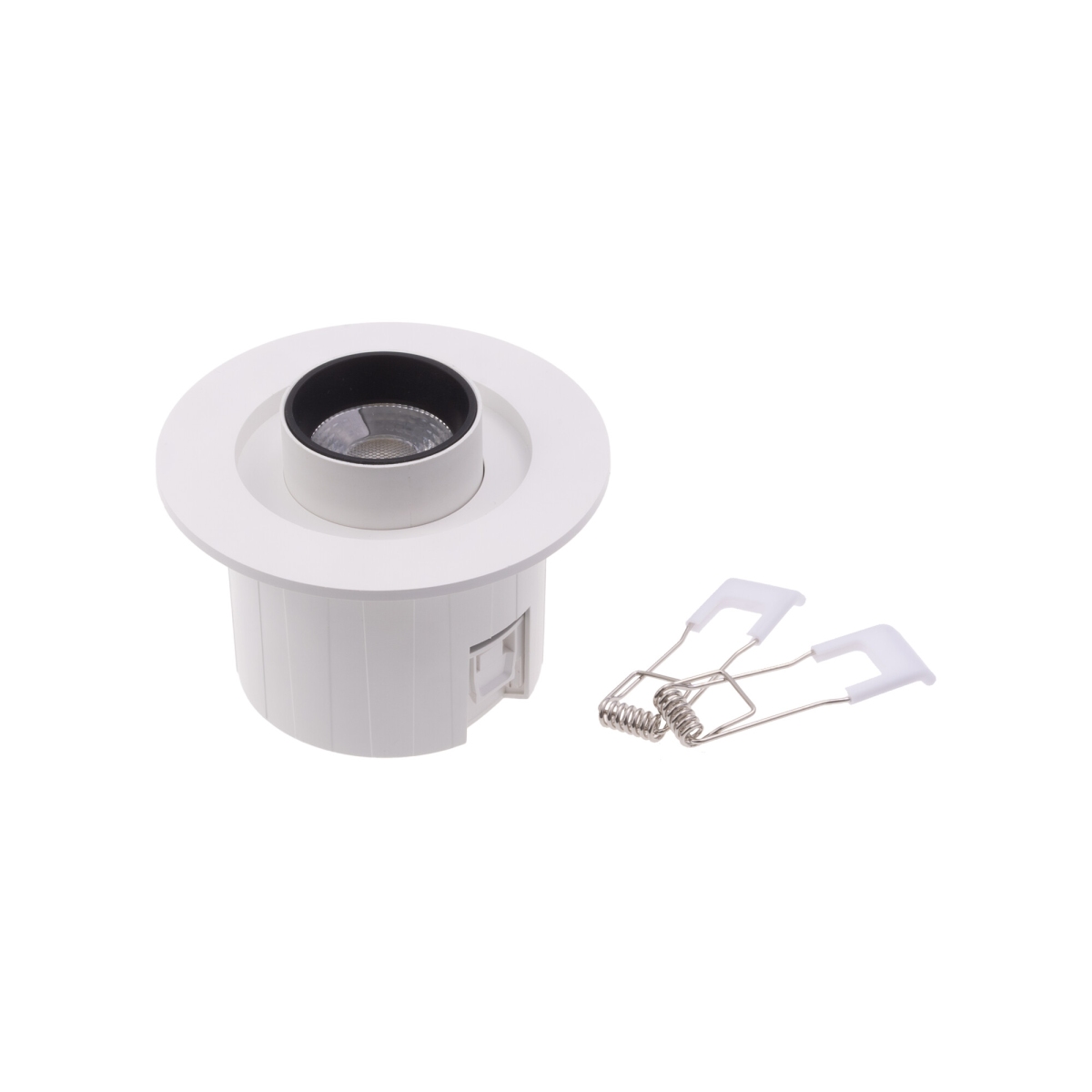 Stropní bodové nebo podhledové CCT LED svítidlo v bílé barvě s krytím IP44 vhodně pro instalaci na strop v interiérech jako jsou kuchyně, obývací pokoje, koupelny a podobně, ale také pro osvětlení venkovních prostor. Svítidlo můžete také nainstalovat do podhledů pomocí pružin v balení.