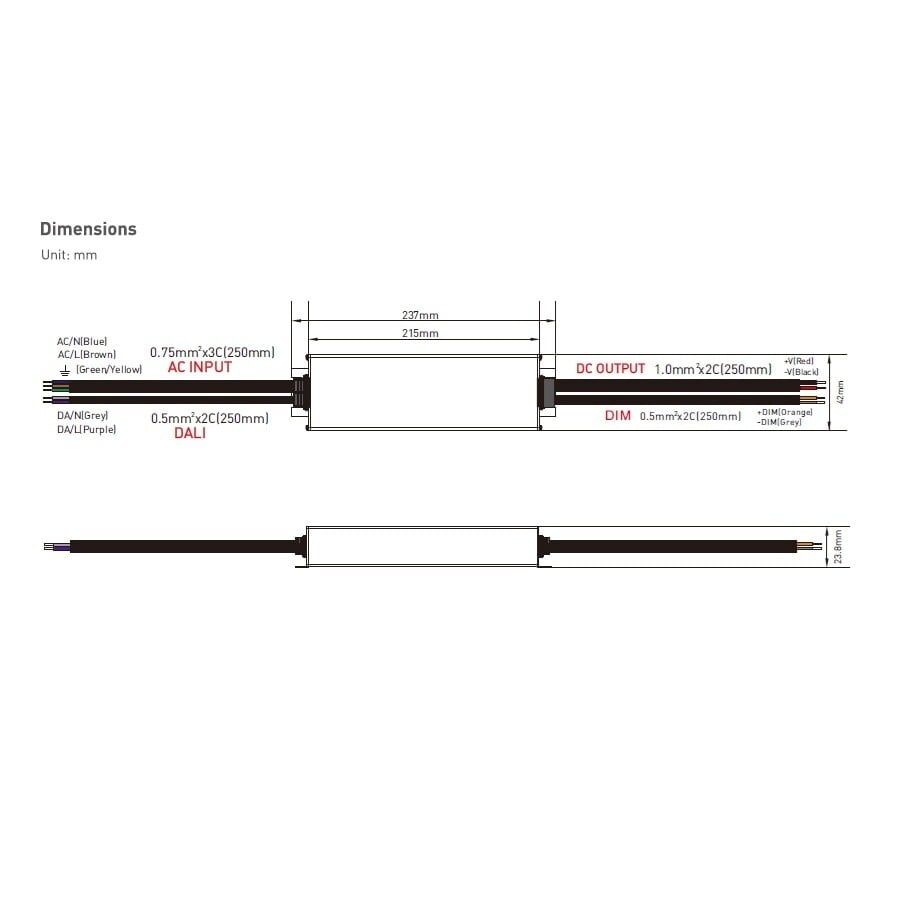 DALI stmívatelný elektronický napěťový spínaný zdroj pro LED řady DA v krytí IP67, který je vhodný především pro LED osvětlení a jeho stmívání. Zdroje lze stmívat pomocí DALI signálu. Vhodné pro 24VDC LED produkty jako jsou například LED pásky, stmívatelné LED žárovky a další LED osvětlení.