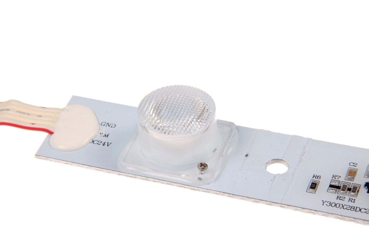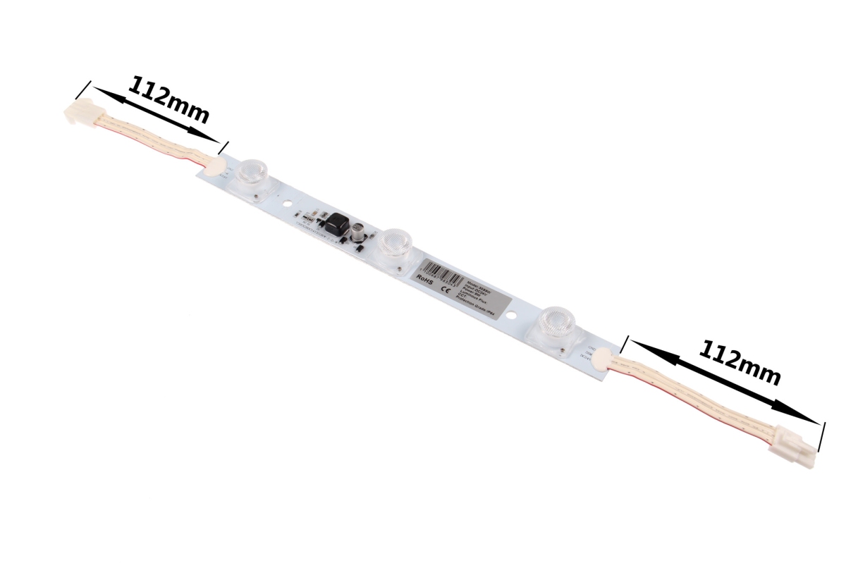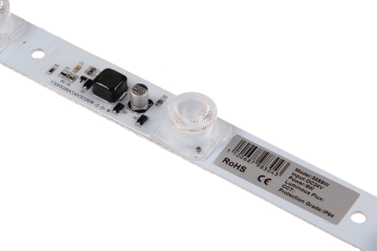 LED moduly s krytím IP64 jsou určené pro světelnou reklamu a další LED aplikace pro reklamní účely, především je určeno pro užití osvětlení světelných boxů (lightboxy). Moduly jsou osazeny čipy s boční optikou a úhlem svitu 15*45° pro nasvícení reklamních boxů, kdy jsou moduly nainstalovány z boků světelného boxu. LED moduly 3OS9W mají dlouhou životnost, vysokou svítivost a použití nová technologie vstřikování IP krytí. Moduly nejsou vybaveny samolepící páskou, moduly lze instalovat pomocí šroubů, nýtů a silikonového gelu, nedoporučujeme používat kyselá a jiný lepidla. Moduly je nutné instalovat na povrchy s dobrým odvodem tepla jako (kov, hliník).Pro dosažení co nejdelší životnosti je potřeba zajistit cirkulaci vzduchu k čipům, aby nedocházelo k přehřívání.   Prodloužená záruka na 5 let.   Specifikace LED modulu Barva světla Studená bílá Barevná teplota 7000K Světelný tok >810lm LED čip OSRAM Úhel svitu 15*45° Vstupní napětí 24V DC Příkon 9W CRI >75 Stmívání Ano, pomocí PWN Krytí IP64 Životnost až 50 000 hodin Provozní teplota -25°C až +60°C Balení 5ks plato 50ks krabice Rozměry 295*27.5*15.6 Záruka 5 let Maximální počet zapojení 20ks sériově   Doporučená instalace při propustnosti materiálu 32%.   Hloubka (mm) lightboxu Rozměry (mm) Hustota (ks/1m2) Osvětlení (lux) 160 1000*1000 6 1600-1800 200 1000*1000 6 1300-1500 240 1000*1000 6 1000-1200 300 1000*1000 6 800-900