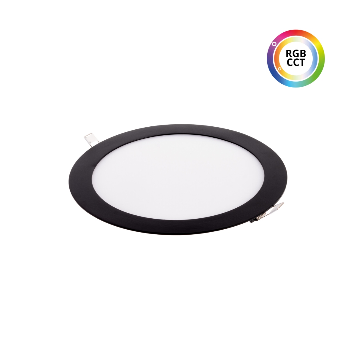 Vestavný kulatý černý RGBCCT LED panel 24V 18W určený pro instalaci do podhledu. Díky bočnímu nasvětlování nejsou jednotlivé LEDky při rozsvícení viditelné a lze použít i ultratenký design. LED panel díky RGBCCT provedení Vám umožňuje nastavit barvu bílého světla v rozmezí od 2000K do 6000K a můžete nastavit bílé světlo od teplých žlutých odstínů bílé přes denní až po studené bílé světlo. Zároveň lze nastavit také barvy z RGB spektra (červená, zelená, modrá a jejich kombinace). Napětí 24V umožňuje tyto LED panely taktéž instalovat na místa, kde potřebujete nízké napětí. Zároveň 24V napětí je často využíváno v chytrých domácnostech jako je LOXONE či jiné obdobné systémy.
