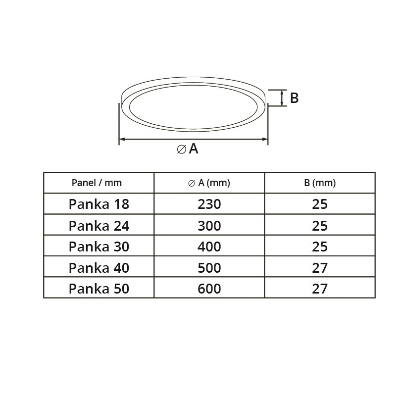 Stmívatelné přisazené stropní (nástěnné) CCT LED svítidlo PANKA 18W v černém provedení je vhodné pro osvětlení místností jako obývací pokoje, chodby, dětské pokoje a další vnitřní prostory. Pod krytem svítidla je umístěn přepínač pro nastavení teploty světla (CCT), kdy můžete vybírat mezi 5 barvami světla: 2700K teplá bílá 3000K teplá bílá 4000K denní bílá 5000K denní bílá 6000K studená bílá O barvě světla toho LED svítidla se tedy můžete rozhodnout až během instalace. Světlo PANKA můžete namontovat 3 způsoby: stropní nebo nástěnná instalace zavěšení na lanka montáž na strop pomocí závěsné tyče Svítidlo PANKA lze zavěsit na strop pomocí lanek. Lanka se dokupují zvlášť. Svítidlo PANKA můžete na strop přimontovat pomocí závěsné tyče. Závěsná tyč se dokupuje zvlášť. LED svítidlo lze stmívat pomocí TRIAKových stmívačů. Pro toto stmívání můžete využít jeden z těchto typů stmívačů z naší nabídky: ACT240W - Stmívání pomocí přijímače dimLED s možností dokoupení více variant ovladačů 10V480W - Stmívání pomocí přijímače dimLED s možností použití 0/1-10V a dokoupením více variant ovladačů KNT240W - Stmívání nástěnným ovladačem Tuya TRIAK - Stmívání přes Tuya ZIGBEE TRIAK - Stmívání přes ZIGBEE AC TRIAK DALI stmívač - Stmívání pomocí protokolu DALI případně další stmívače TRIAK (TRIAC) Specifikace LED svítidla Barva svítidla Černá Materiál svítidla Plast Vstupní napětí 180-265V AC Příkon 18W Barva světla CCT (5 variant bílé barvy) Teplota světla 2700-6000K Světelný tok 1860lm CRI >80 Úhel svitu 160° Krytí IP42 Životnost 25000h Stmívatelnost Ano Způsob stmívání TRIAK (TRIAC) Rozměry 230*25mm (průměr x výška)