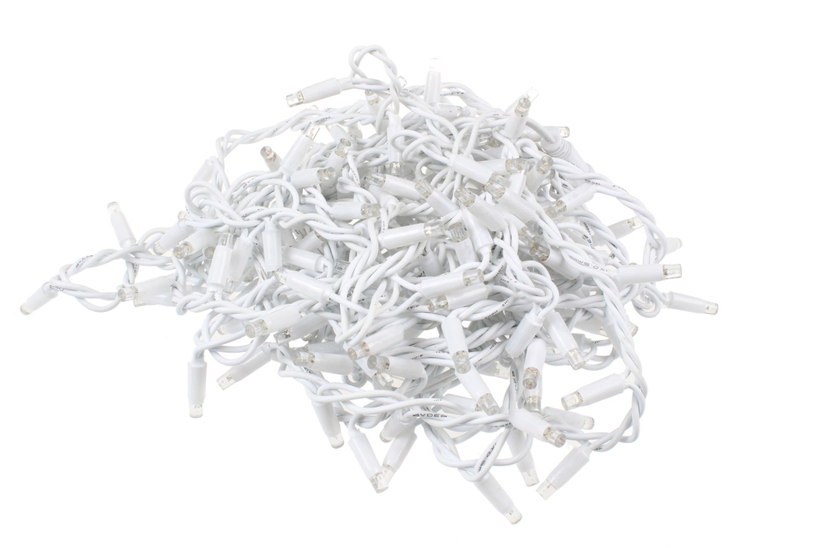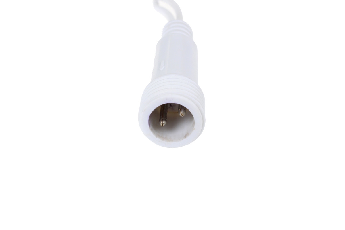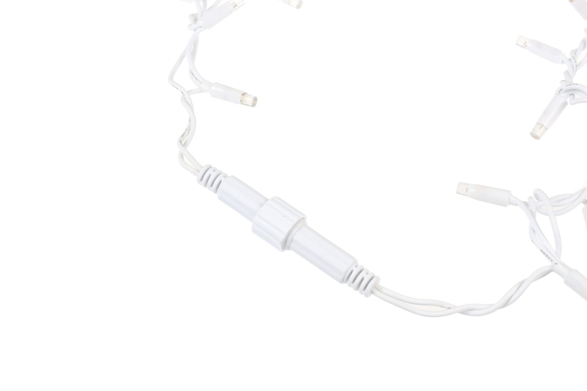 LED světelný řetěz 12W200 nelze dělit, je nutné zapojit vždy celých 10m originální délky. Každý konec řetězu je osazen voděodolným konektorem, který umožňuje poté zapojit v řadě další LED světelný řetěz 12W200. Maximální doporučený počet zapojení řetězů za sebou je 10 ks (tedy celkem 100m). Kabely na led řetězu jsou dle norem dvojitě izolované.