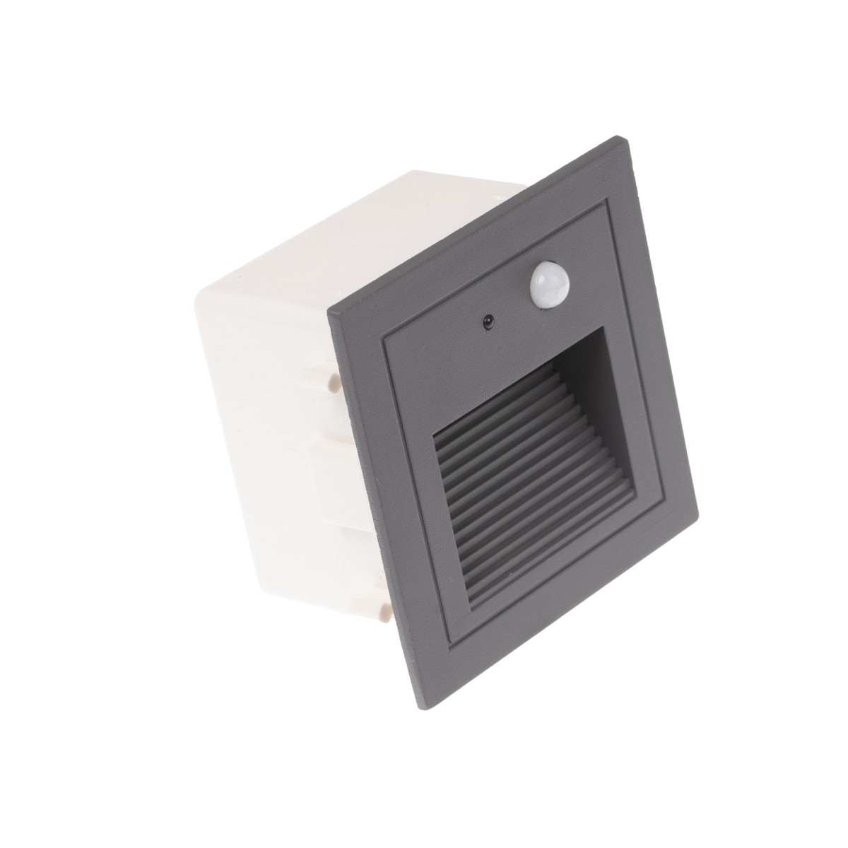 LED svítidlo vestavné na 230V s PIR pohybovým čidlem. Nejčastěji se používá jako orientační osvětlení například ke schodům nebo do chodeb. Čidlo při pohybu sepne svítidlo na cca 35 vteřin, pokud je intenzita světla v okolo pod 5 luxů. Maximální dosah čidla jsou 3 metry.