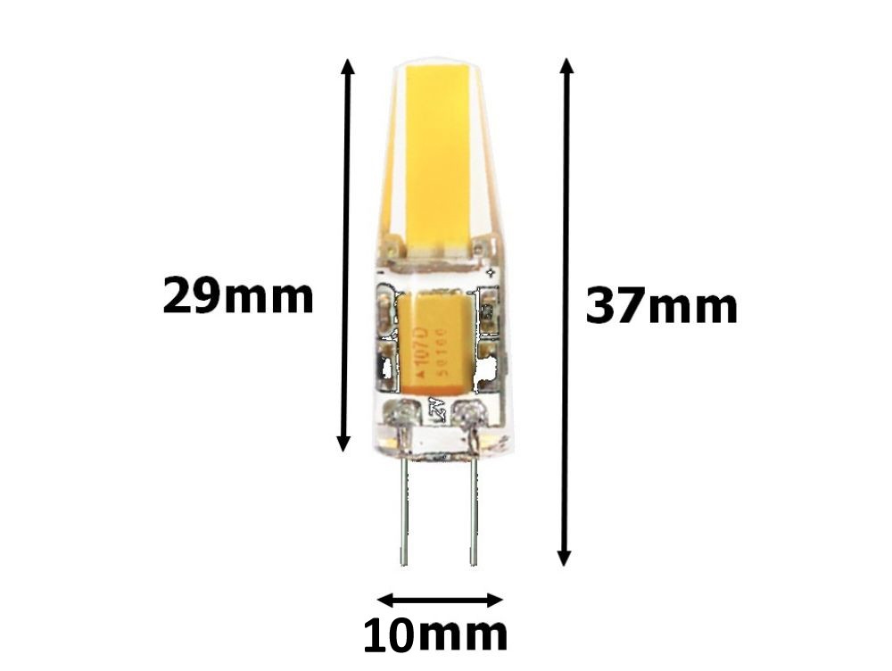 LED úsporná žárovka na 12V se paticí G4, která nahrazuje 25-30W halogen. LED žárovky nabízíme ve třech barevných variantách (studená bílá, denní bílá a teplá bílá). Nechte si poradit při výběru barvy světla.   Při výměně za běžnou G4 halogenovou žárovku doporučujeme použít 12V stabilizovaný zdroj, který lze případně zakoupit i u nás. V případě použití původního halogenového zdroje může dojít k poškození LED žárovek. !!! Pozor, při manipulaci s touto žárovkou zacházejte opatrně, aby nedošlo k jejímu zlomení a tím k poškození!!!   Specifikace LED žárovky Vstupní napětí 12V AC/DC Patice G4 Barevná varianta Teplá bílá Denní bílá Bílá Teplota 3000K 4500K 6000K Světelný tok 180lm 190lm 200lm CRI >80 Příkon 3W Úhel svitu >180° Náhrada za >25W halogen LED čip COB Epistar Provozní teplota -15°C až max. 60°C Životnost až 40 000 hodin Rozměry 10×29 mm (p/v) Stmívatelná ANO* *s naším spínaným zdrojem a ovladačem   Co je teplota světla a jak ji správně vybrat? To se dozvíte zde.