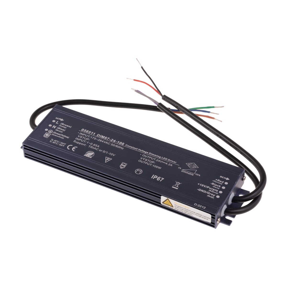 Stmívatelný elektronický napěťový spínaný zdroj pro LED řady DIM67 v krytí IP67, který je vhodný především pro LED osvětlení a jeho stmívání. Vhodné pro 24VDC LED produkty jako jsou například LED pásky, stmívatelné LED žárovky a další LED osvětlení.   Zdroje řady DIM67 lze stmívat 5 způsoby: signálem 0-10V signálem 1-10V pomocí rezistoru 0-100k Ohm signálem 10V PWM na vstupu pomocí TRIAC stmívače (průběh a rozmezí stmívání u triakových stmívačů závisí na modelu stmívače) Zdroj nelze používat s PWM stmívači umístěnými na výstupu zdroje. V případě použití může dojít k poškození zdroje i stmívače.   LED zdroj DIM67 24V 100W je opatřen: tepelnou pojistkou pojistkou proti zkratu (po odstranění zkratu je opět plně funkční) pojistkou proti přetížení   Specifikace LED zdroje Vstupní napětí 170 - 250V AC Výstupní napětí 24V DC/4,17A Pojistka Tepelná, proti zkratu, proti přetížení Výkon 100W* Startovací proud 55A Krytí IP67 Třída izolace II Rozměry 223x62x18,5mm   * Upozornění! Max. trvalé doporučené zatížení je s min. 20% rezervou pro běžné užívání, pro instalaci do komerčních prostor s dobou používání 8 a více hodin denně nepřetržitě je doporučené trvalé zatížení vzhledem k účinnosti spínaných zdrojů s min. 30% rezervou, aby byla zachována nejdelší životnost zdroje.