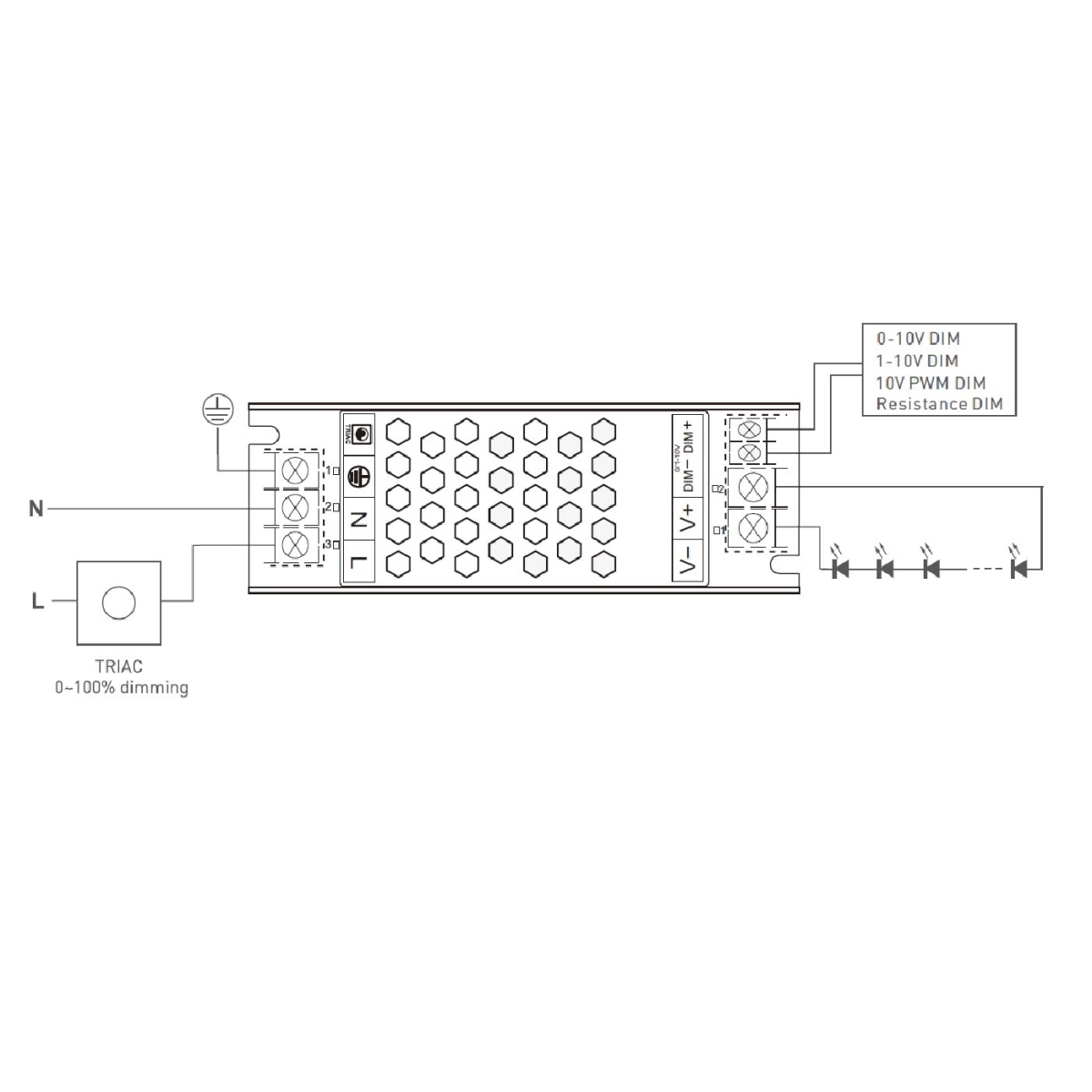 LED zdroj DIM20 24V 150W je opatřen: