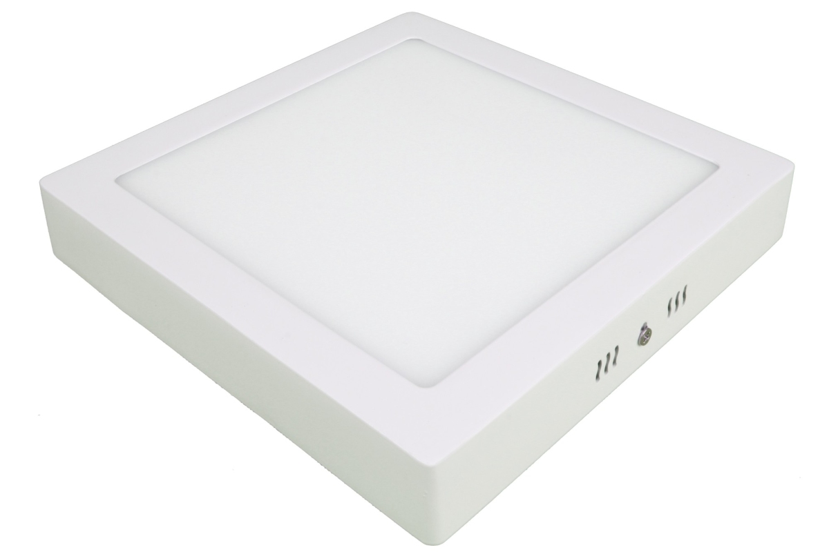 Čtvercový přisazený LED panel 18W. Díky bočnímu nasvětlování nejsou jednotlivé LED diody při rozsvícení viditelné a svítidlo je díky tomu také velmi nízké. LED panel nabízíme ve barvách světla teplá bílá, denní bílá a studená bílá.