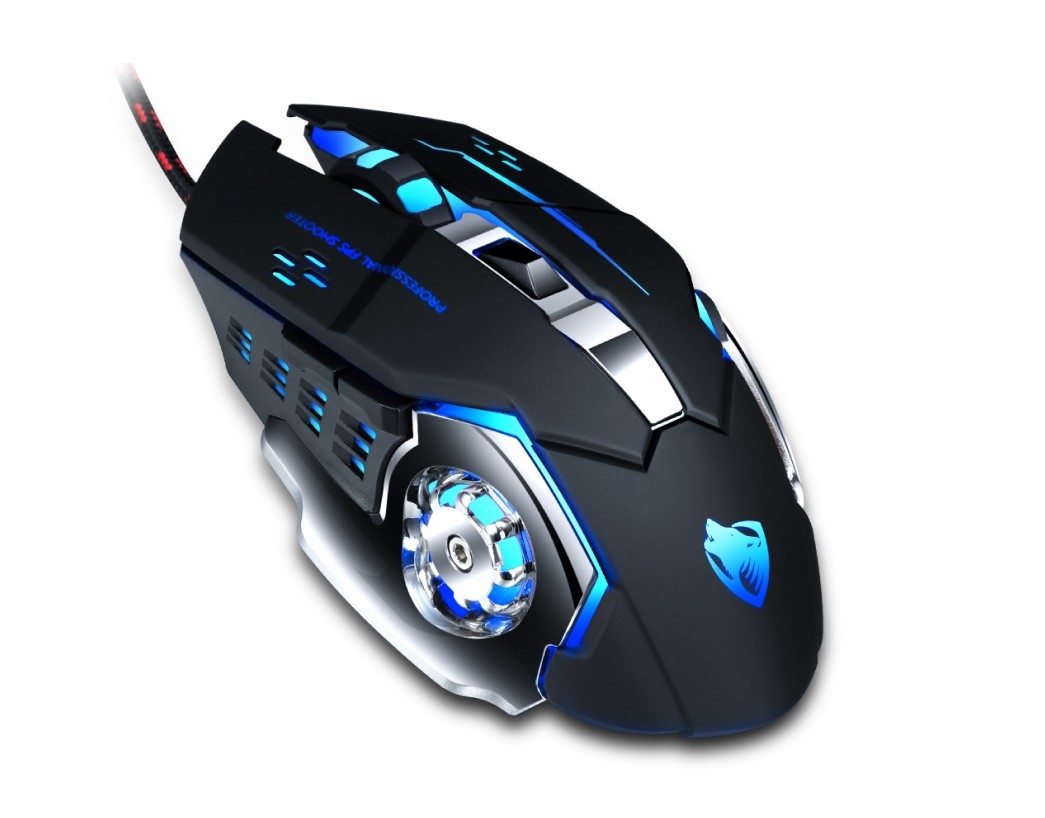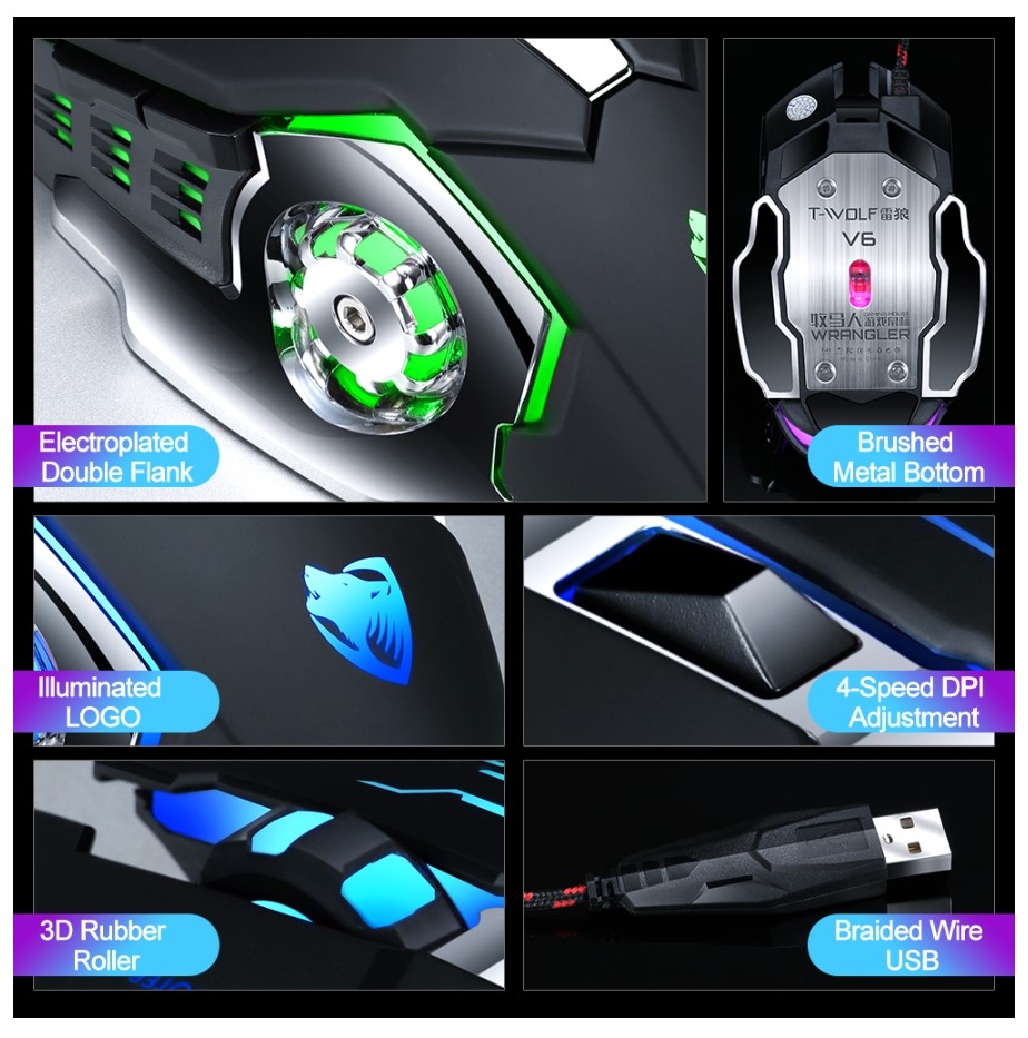 T-Wolf V6 Herní myš se zvukem – černá/stříbrná