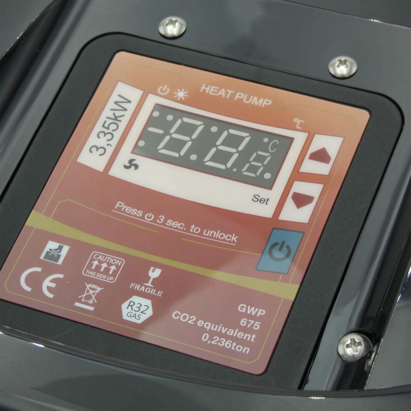 Tepelné čerpadlo SF35 přináší zcela nový zážitek z užívání vašeho bazénu. Užijte si dokonale teplotu vody díky tichému a energicky efektivnímu tepelnému čerpadlu. Tepelné čerpadlo Planet Pool SF35 je vhodné pro bazény do objemu 15m3 (pro bazény do přibližné velikost 5,5m kruh, 5,5 x 3,6m ovál). Kompaktní konstrukce čerpadla nezabere téměř žádné místo a lze jej používat při teplotách od 10 °C. Přitom bazén ohřeje až na 35 °C. Požadovanou teplotu jednoduše nastavíte pomocí digitálního displeje a čerpadlo již zajistí vše ostatní. Titanový výměník tepla je odolný proti bazénové chemii, díky čemuž je vhodný i pro bazény se slanou vodou. Moderní antracitová barva kovového pouzdra pak zajišťuje nerušený vzhled na zahradě.