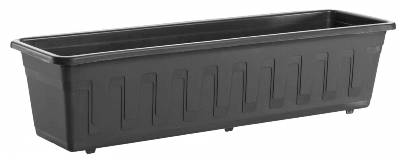 Plastový truhlík na květiny, pro lepší růst a snadnější zálivku se doporučuje provrtat dno pro odtok vody a kombinovat s miskou pod truhlík.