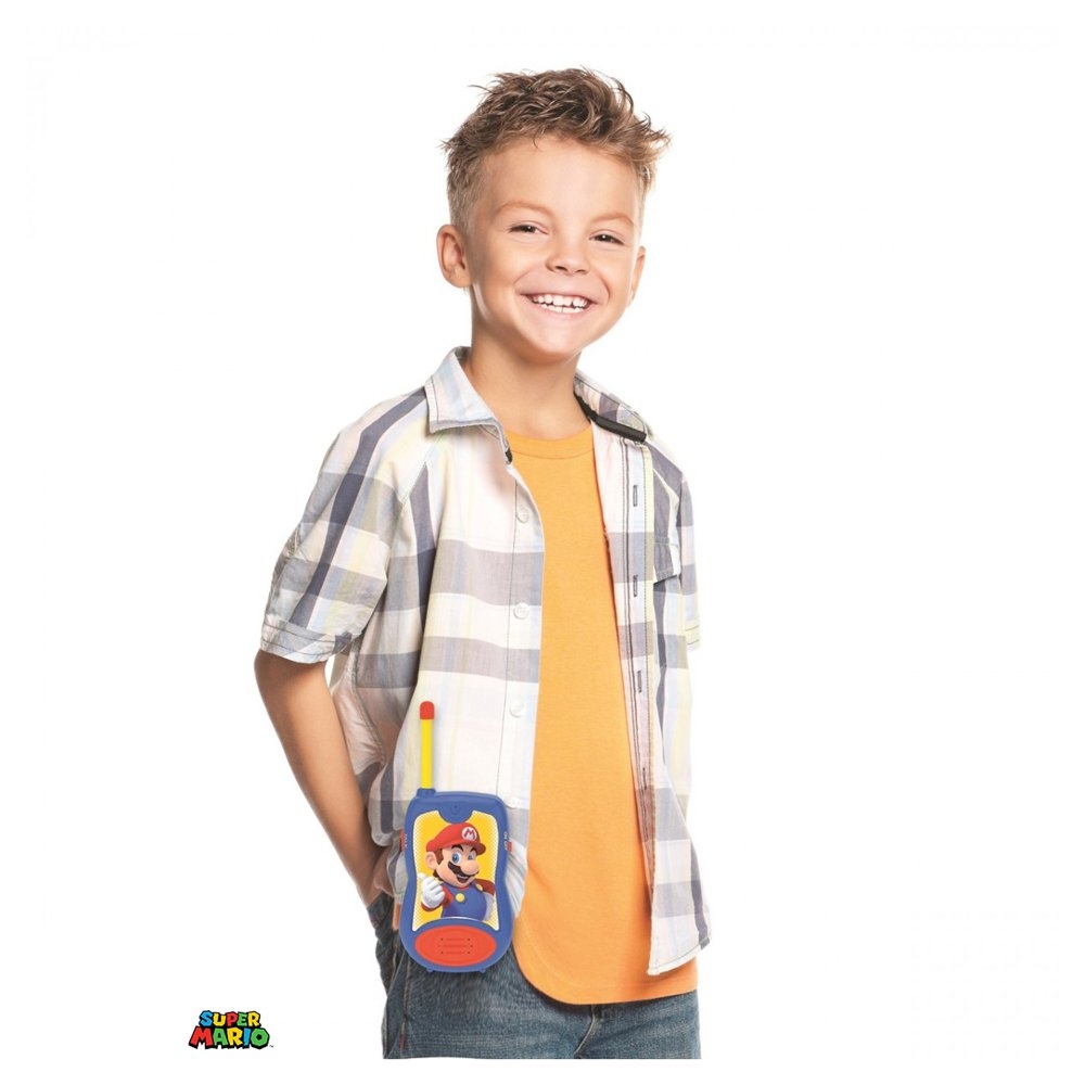 Hry plné dobrodružství a napětí s opravdovými funkčními vysílačkami jako mají policisté a agenti! Ergonomicky tvarované vysílačky s motivy Super Maria mají dosah až 120 metrů v závislosti od prostředí a povětrnostních podmínek. Díky praktickému klipu lze vysílačku snadno připnout na pásek a ruce zůstávají volné.  Dvojice vysílaček s flexibilní anténou. Vhodné na použití venku i uvnitř. Připevnění na opasek pomocí spony. Napájení: 2 baterie 9 V (nejsou součástí balení). Vhodné pro děti od 3 let.