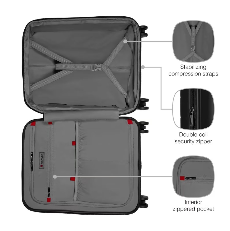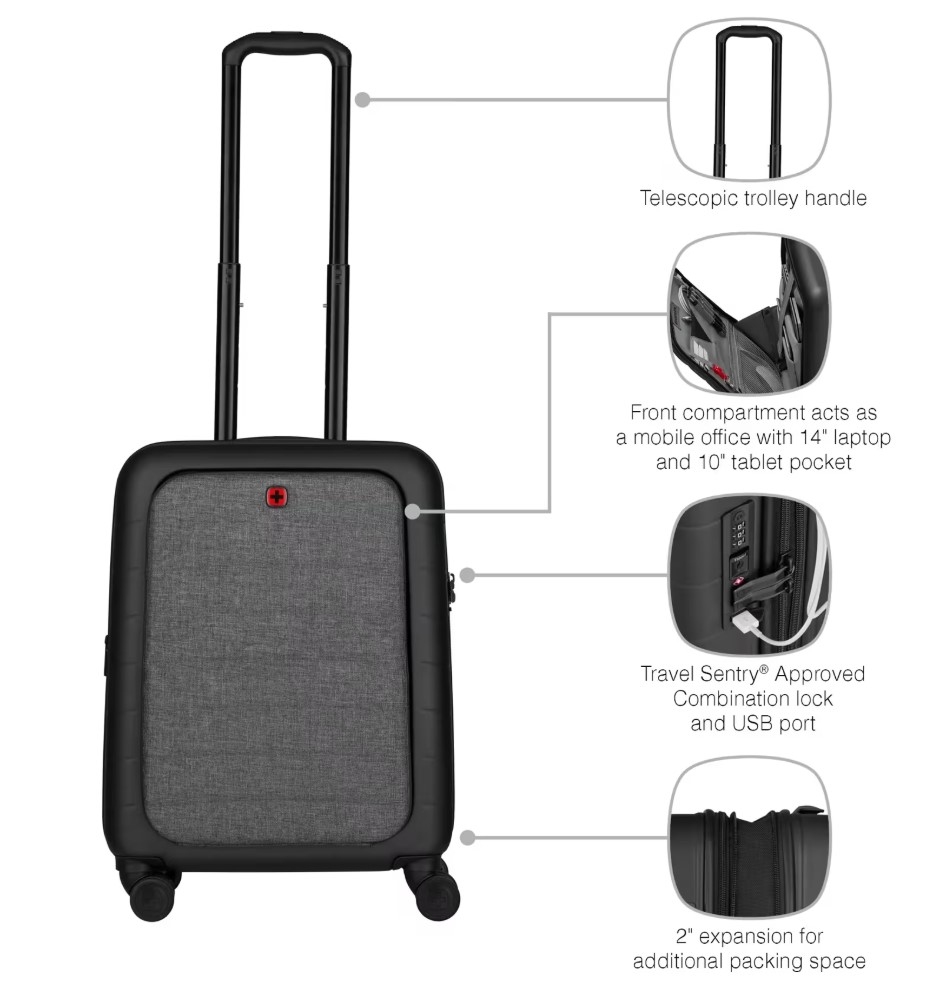 Wenger Syntry S je moderní příruční kufr navržený pro cestovatele, kteří potřebují mít pracovní techniku, osobní věci i pohodlí vždy po ruce. Kombinuje kompaktní rozměry vhodné na palubu letadla s chytrými funkcemi, které z něj dělají ideální zavazadlo pro pracovní cesty, krátké pobyty i každodenní přesuny mezi městy.