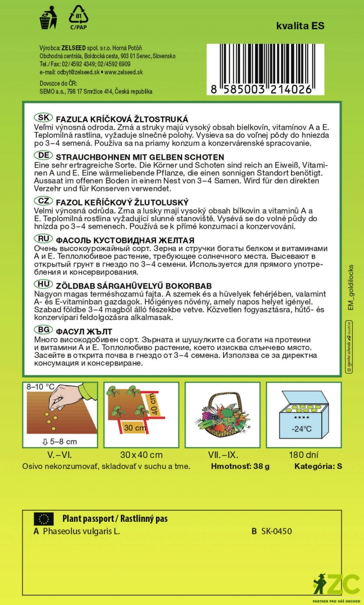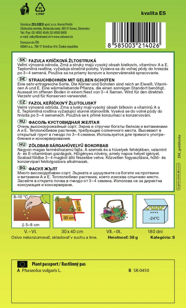 Velmi výnosná odrůda, zrna i lusky mají vysoký obsah bílkovin a vitamínů A a E