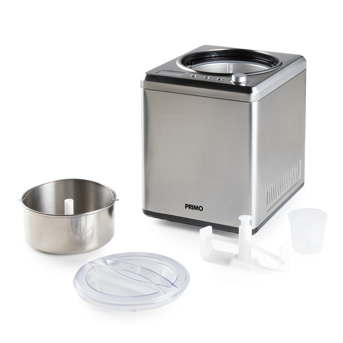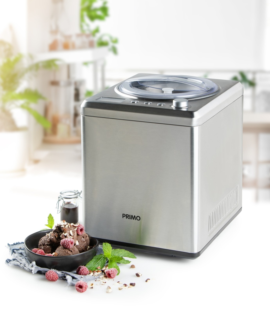 Samochladící a plně automatický zmrzlinovač s kompresorem. Vyjímatelná nerezová nádoba 2 litry. Tichý DC motor.