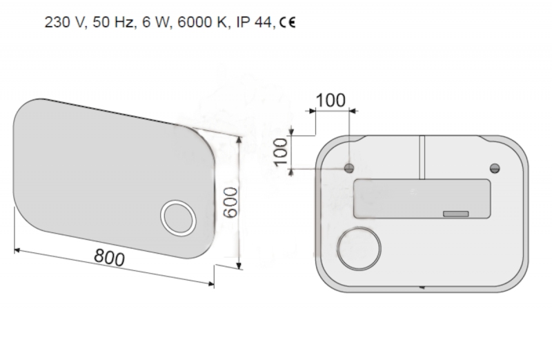 Obdélníkové zrcadlo s LED osvětlením o rozměru 60x80 cm. Barevná teplota osvětlení je 6 000 K (chladnější bílá). S krytím IP44, je chráněno proti stříkající vodě.